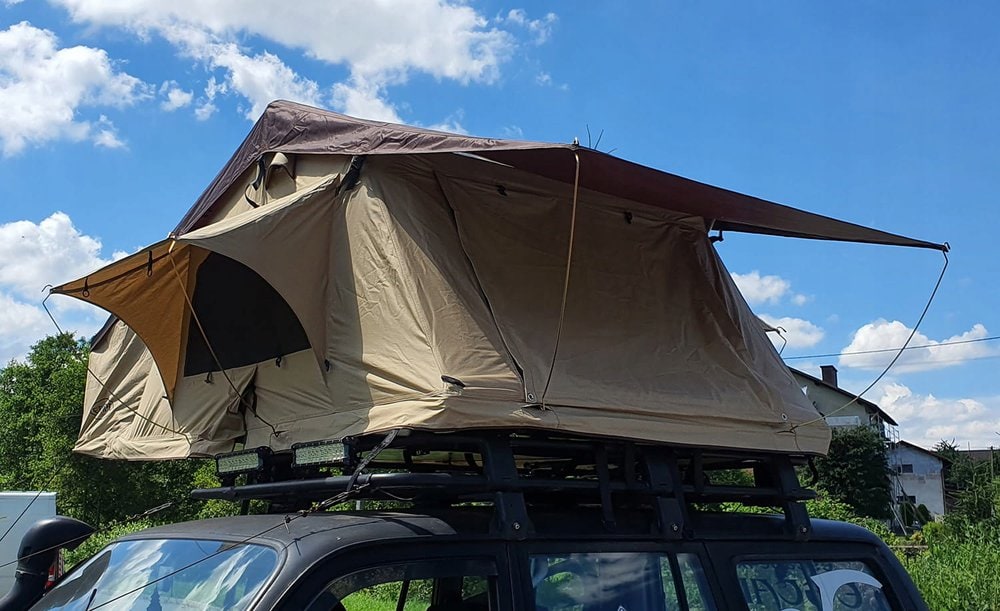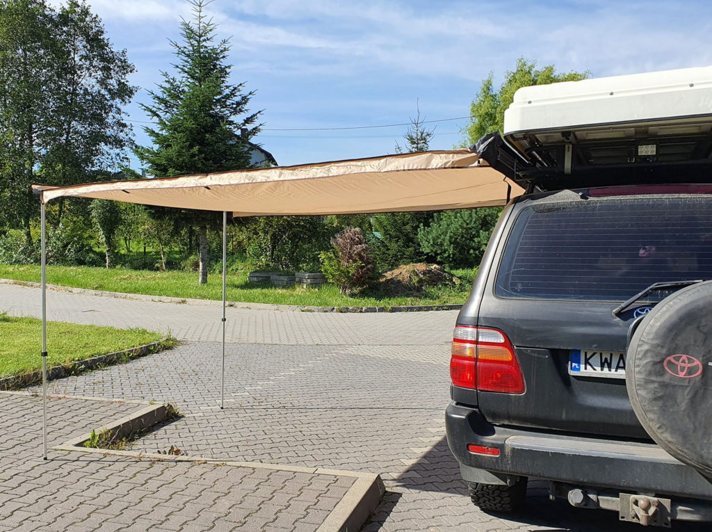 Przedsionek kempingowy dla 6os. – łatwo rozkładany wygodny przedsionek turystyczny w możliwościa otwierania na 3 strony z 3 moskitierami, które przydadzą się zwłaszcza wieczorami. Z łatwością dopasujesz go do swojego Vana lub SUVa