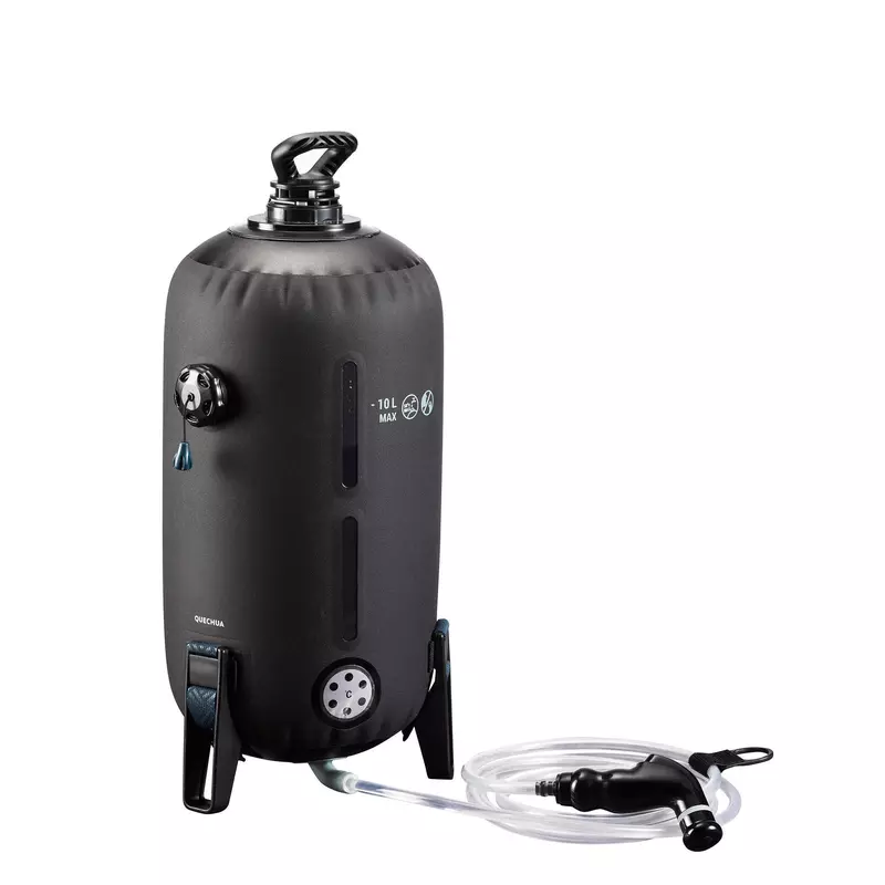 Prysznic turystyczny – składany prysznic turystyczny z pompką ciśnieniową i słuchawką prysznicową. Zbiornik w specjalnej powłoce absorbującej ciepło aby podgrzać wodę. Na ściance termometr i zawór bezpieczeństwa uniemożliwiający „przepompowanie” zbiornika.